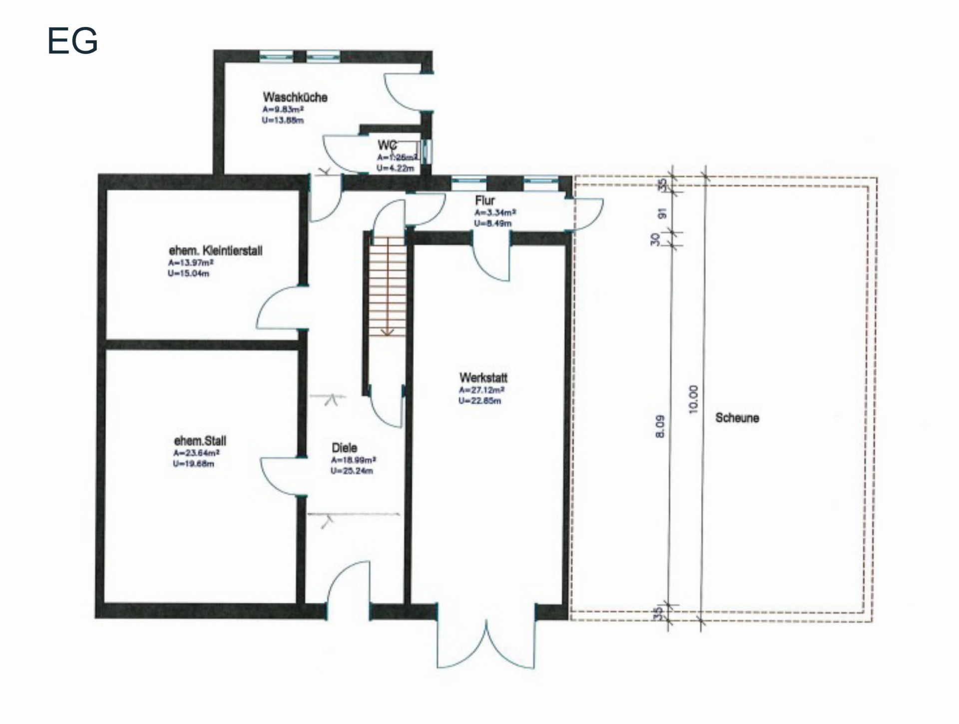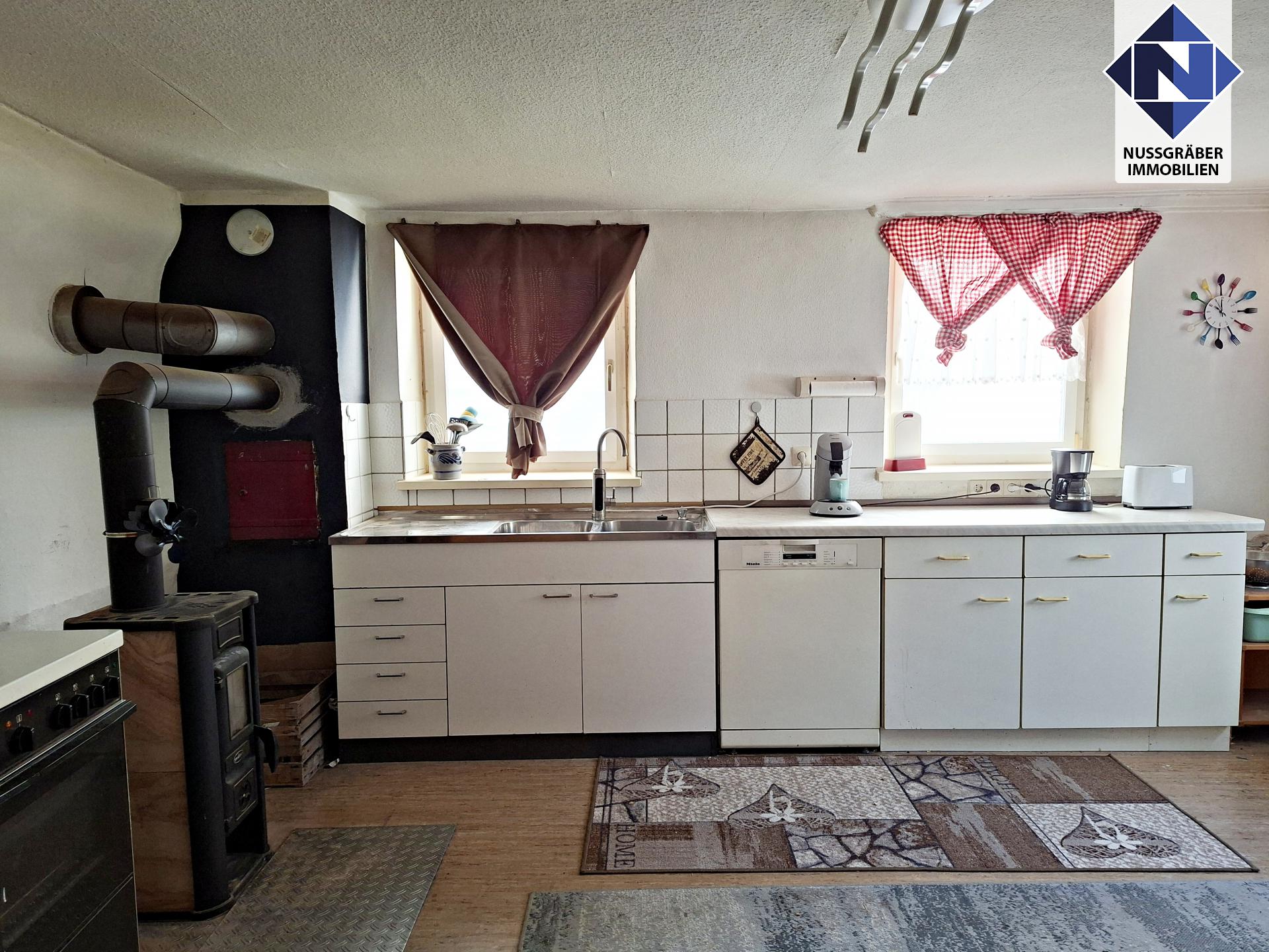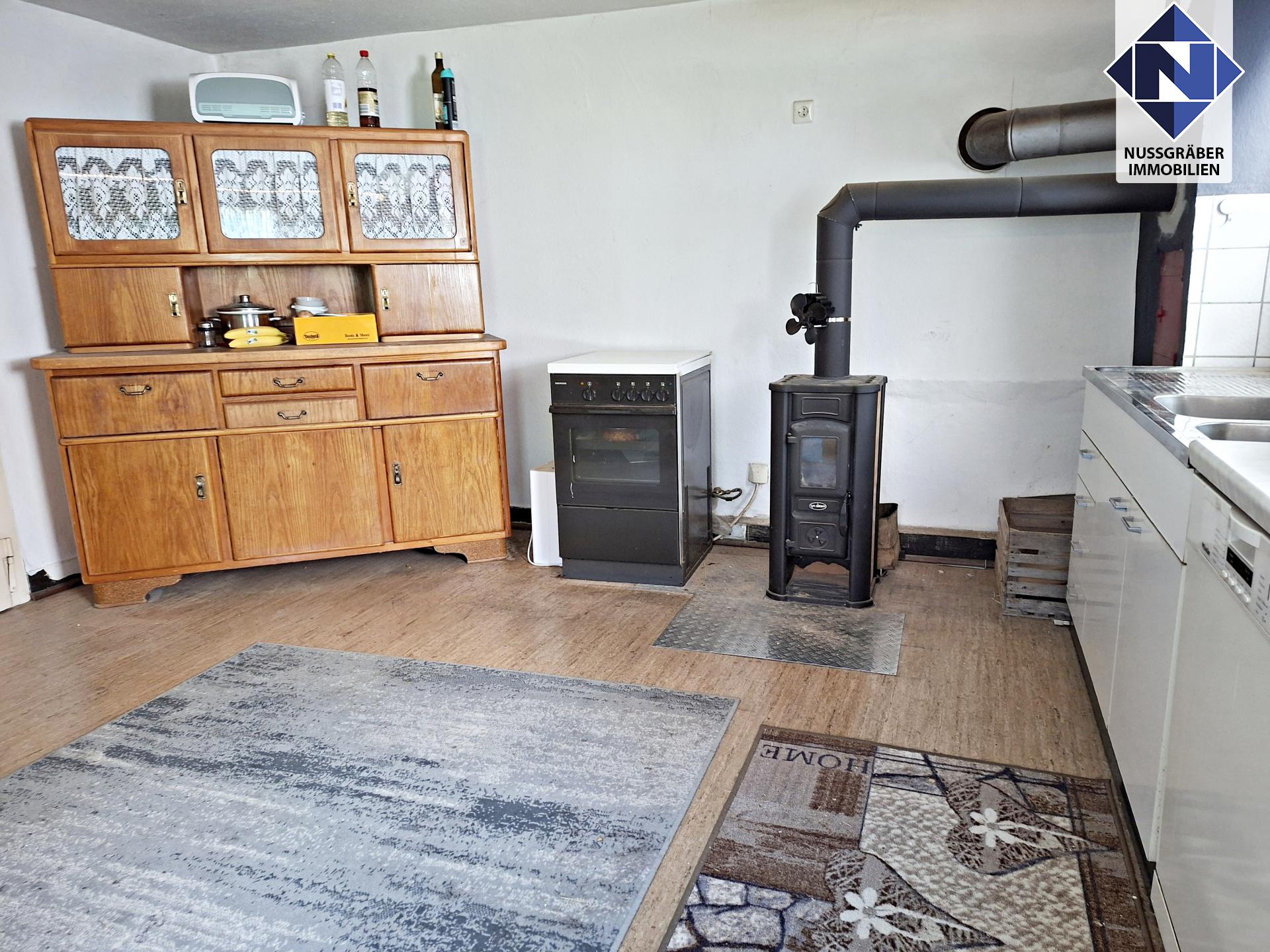 Neben der Hauptwohnung verfügt die Immobilie über umfangreiche Nutzflächen: Gewölbekeller, Bühne, Werkstatt, Scheune und Schuppen – ein Paradies für Handwerker und Kreative.