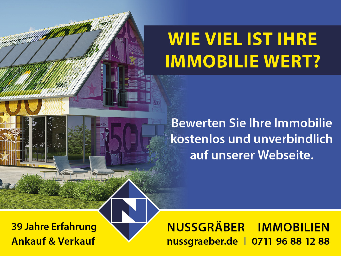 Jegliche durch Nussgräber Immobilien erstellten Fotos, Daten und Textbeiträge sind urheberrechtlich geschützt. Für die Vervielfältigung von Bildmaterial, Information oder Daten, insbesondere die Verwendung von Texten, oder Textteilen, bedarf es der vorherigen schriftlichen Einwilligung durch Nussgräber Immobilien. Unberechtigte Verwendungen werden zur Anzeige gebracht und ziehen eine Nutzungsberechnung nach sich.