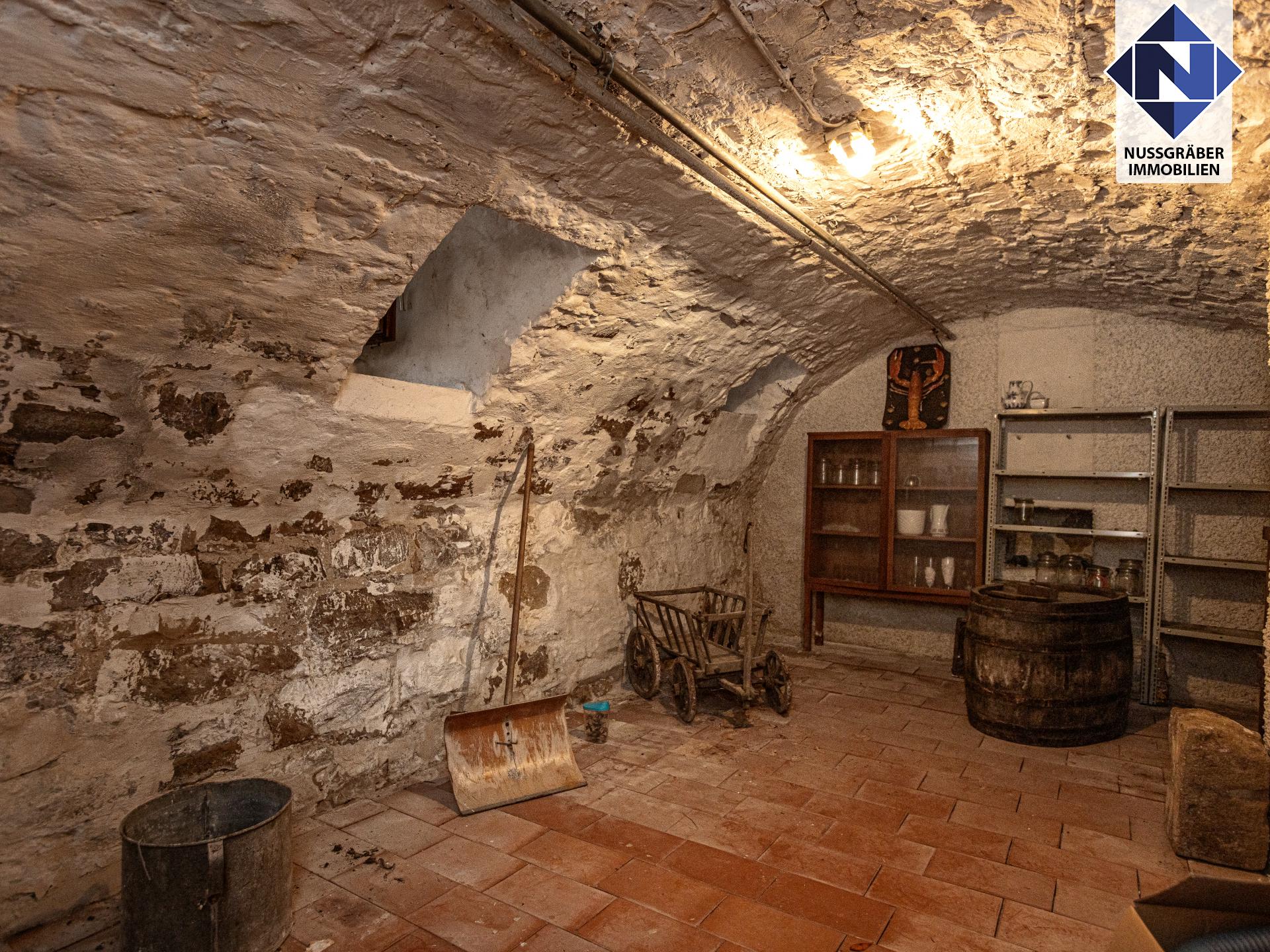 Im Untergeschoss steht ein weiteres Zimmer zur Verfügung, dann gibt es noch einen wunderbaren Gewölbekeller, ein kleines Bad mit Dusche und WC, einen Heizraum und eine große Diele.