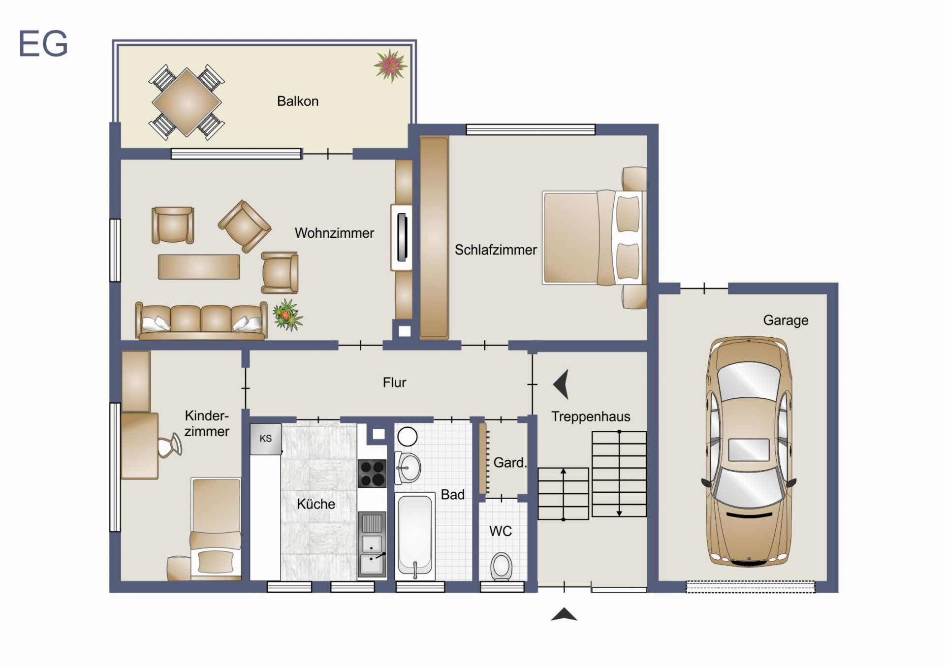 • 1 Garage unmittelbar am Haus