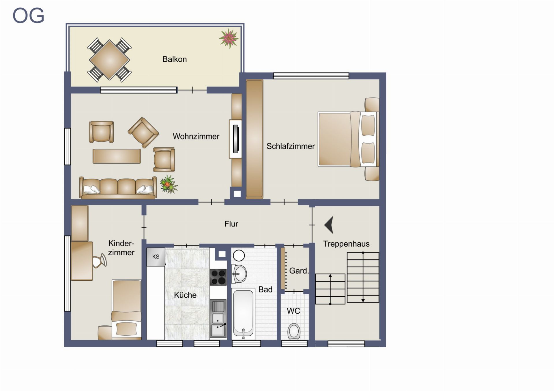 • Identischer Grundriss wie im EG