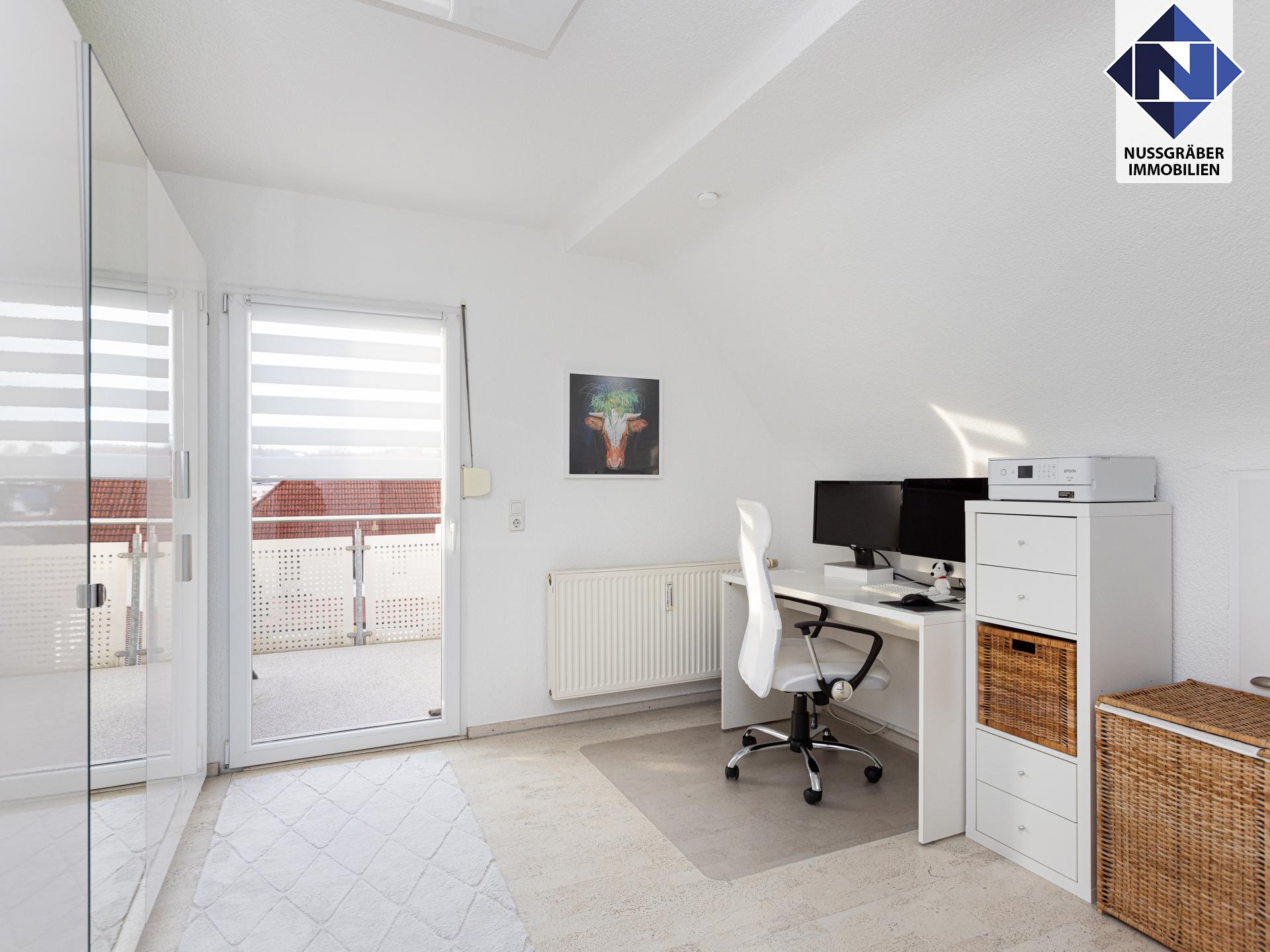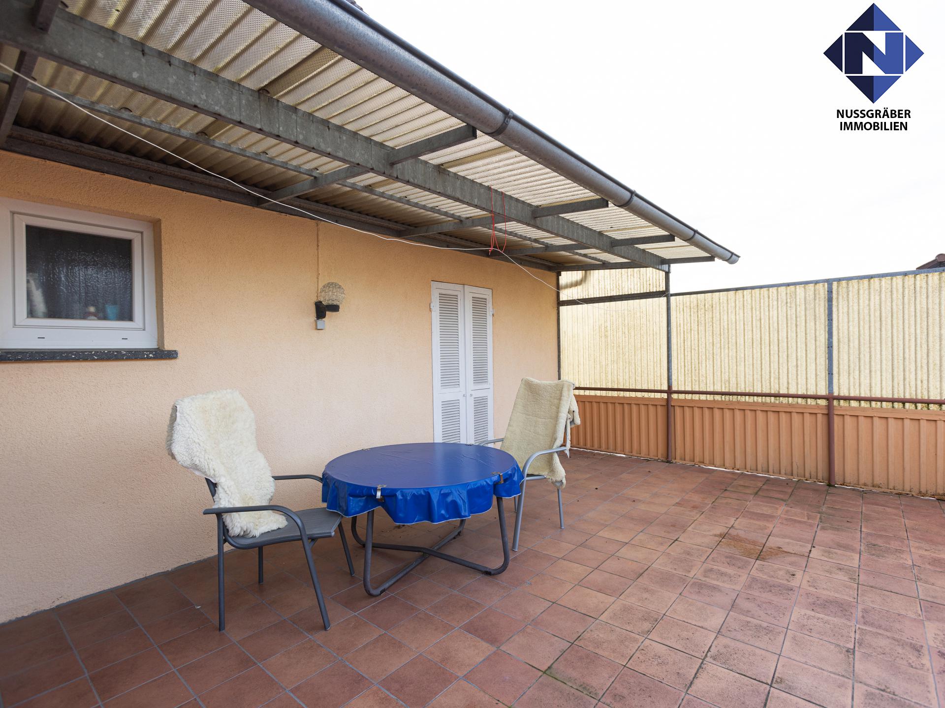 Das Obergeschoss bietet zwei Wohnungen, eine davon mit großem, teilweise überdachtem Balkon.