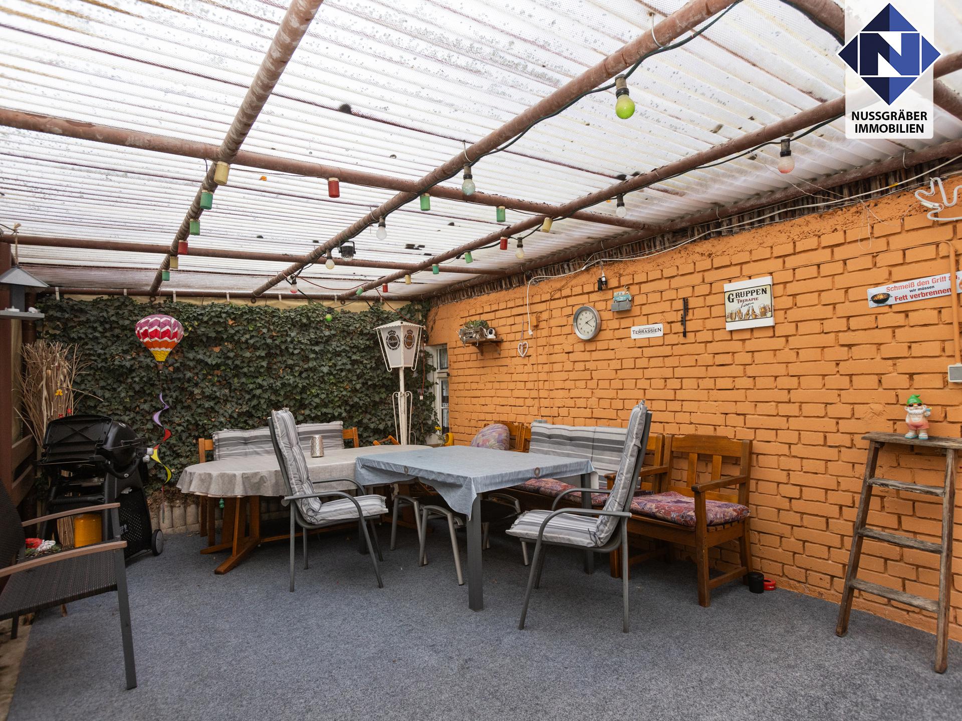 Ein weiteres Highlight ist das große, gemauerte Gartenhaus mit Partyraum und überdachter Terrasse - Sie haben hier eine tolle, separate Lokation für Familienfeiern und Partys.