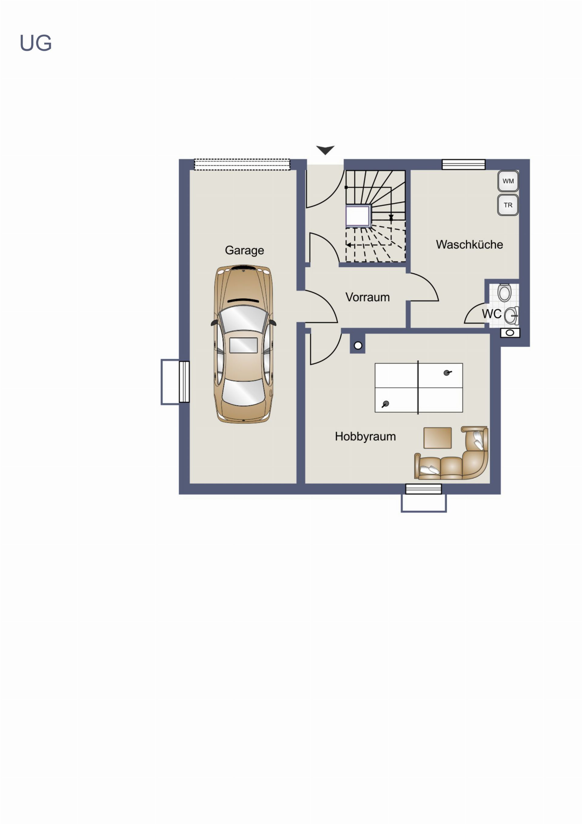 UG: Hobbyraum, Waschküche, WC, Diele und Garage