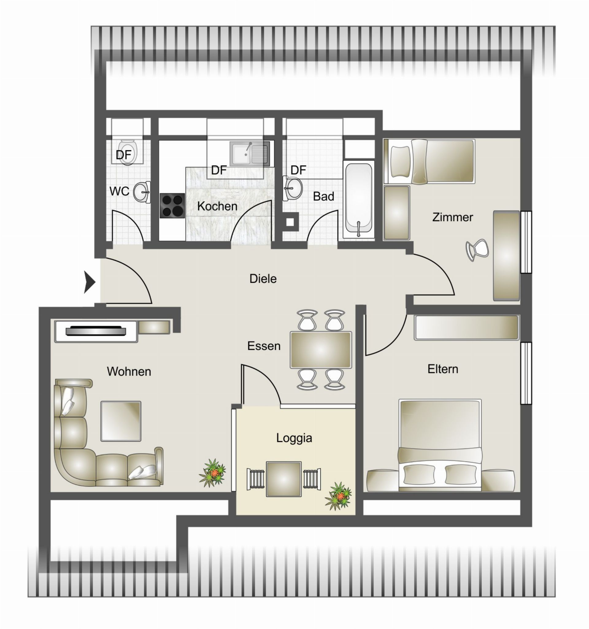 Gemütliche Dachgeschoss-Wohnung mit 3,5 Zimmern und Loggia